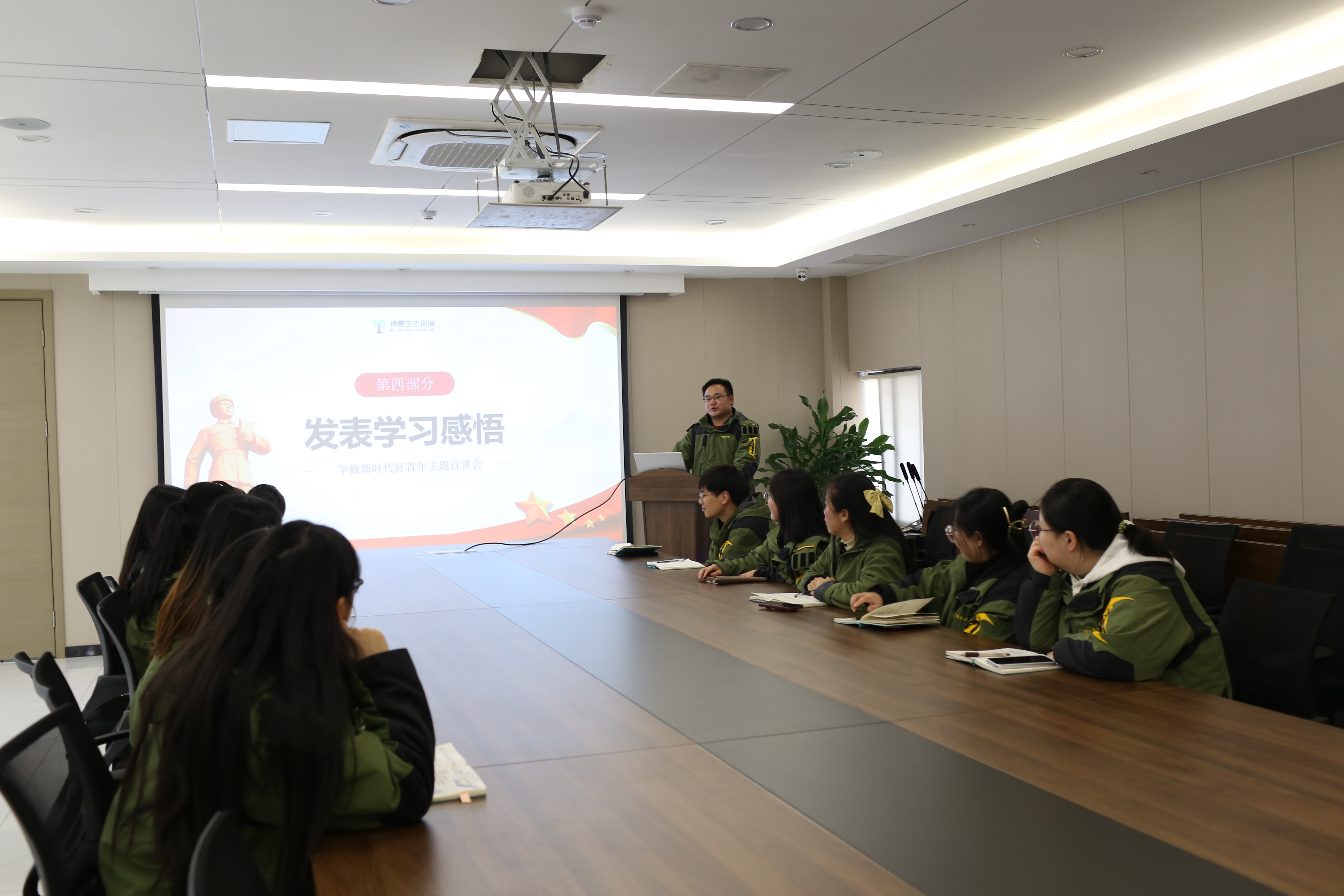 来自职能部门的2名员工代表结合自身工作及生活实际发表了学习感悟和心得体会,从不同视角充分展现了青年员工的理想信念、思想境界、价值追求和精神风貌,会场气氛轻松活跃,热情真挚。