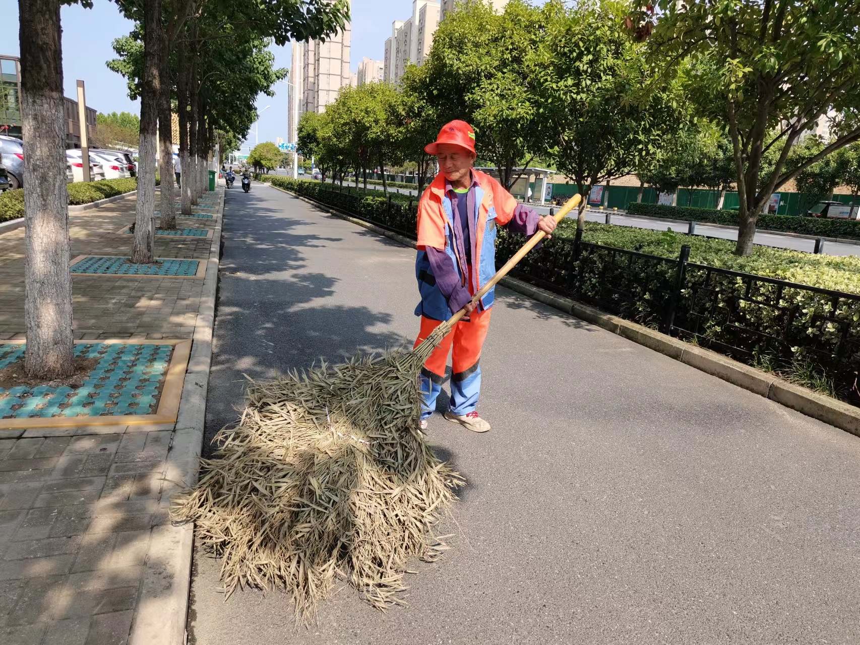 在环卫队伍中,像这样的退伍老兵还有很多,同样保持着军人本色:环卫工人费广支,在部队时曾荣立三等功,现在负责顺祥路清扫保洁工作;水车驾驶员袁效丰,在部队时同样荣立三等功,负责龙岗区域水车作业;环卫队长方风舞,负责临泉路安排督查工作······
